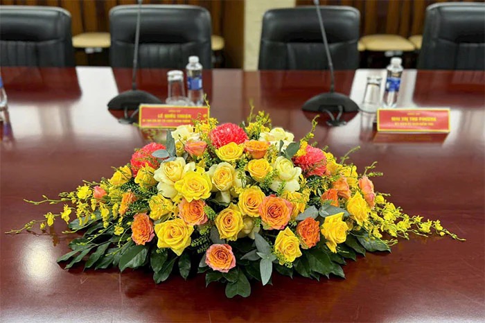 Mình đặt hoa hội nghị cho buổi họp đối tác. Hoa nhìn trang nhã, không quá nổi bật. Màu sắc phù hợp không gian làm việc. Buổi họp diễn ra suôn sẻ và chuyên nghiệp hơn. Mình khá yên tâm.
