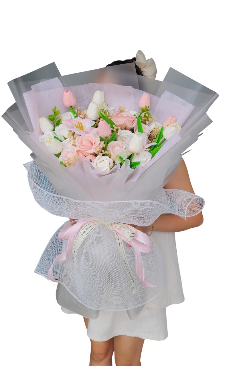 Gam màu pastel nhẹ kết hợp cùng lớp giấy gói thanh lịch tạo cảm giác tinh tế, trang nhã và được nâng niu, như một lời nhắn gửi nhẹ nhàng nhưng đầy yêu thương. Bó hoa rất phù hợp để tặng trong những dịp chúc mừng, sinh nhật, cảm ơn, thăm hỏi hoặc gửi gắm tình cảm chân thành theo cách giản dị mà sâu sắc.